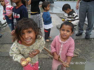 When we first visited the centre, the doctor took us out into the community to show us how these street families live. The pinch on the cheek for the child is a token of affection in Albania.